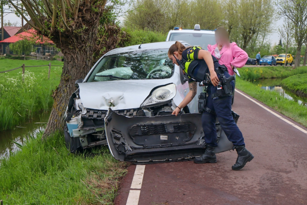 SCHIEDAM - Een auto is vanmiddag 180 graden om zijn as gedraaid na een aanrijding met een boom op de Woudweg.