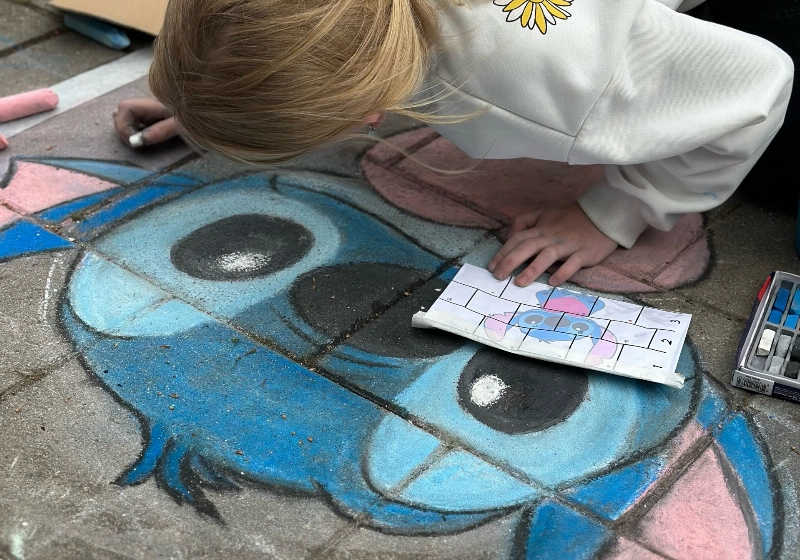 De kinderen zijn leerlingen van de Vlaardingse tekenschool Nerdsketch; zij maakten er met stoepkrijt vier kleurrijke kunstwerken – met nieuwsgierige voorbijgangers als publiek.